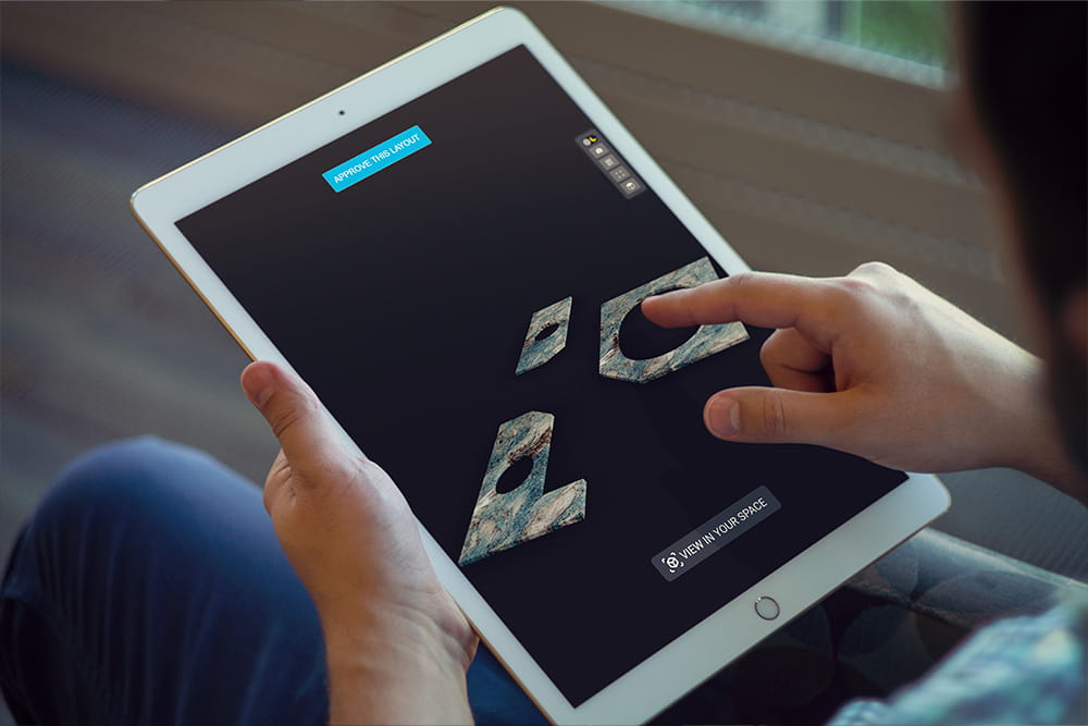 Customers can view their countertop layout in their actual space using augmented reality—no app required. They can place the layout, move around it, and experience how it will look before installation.