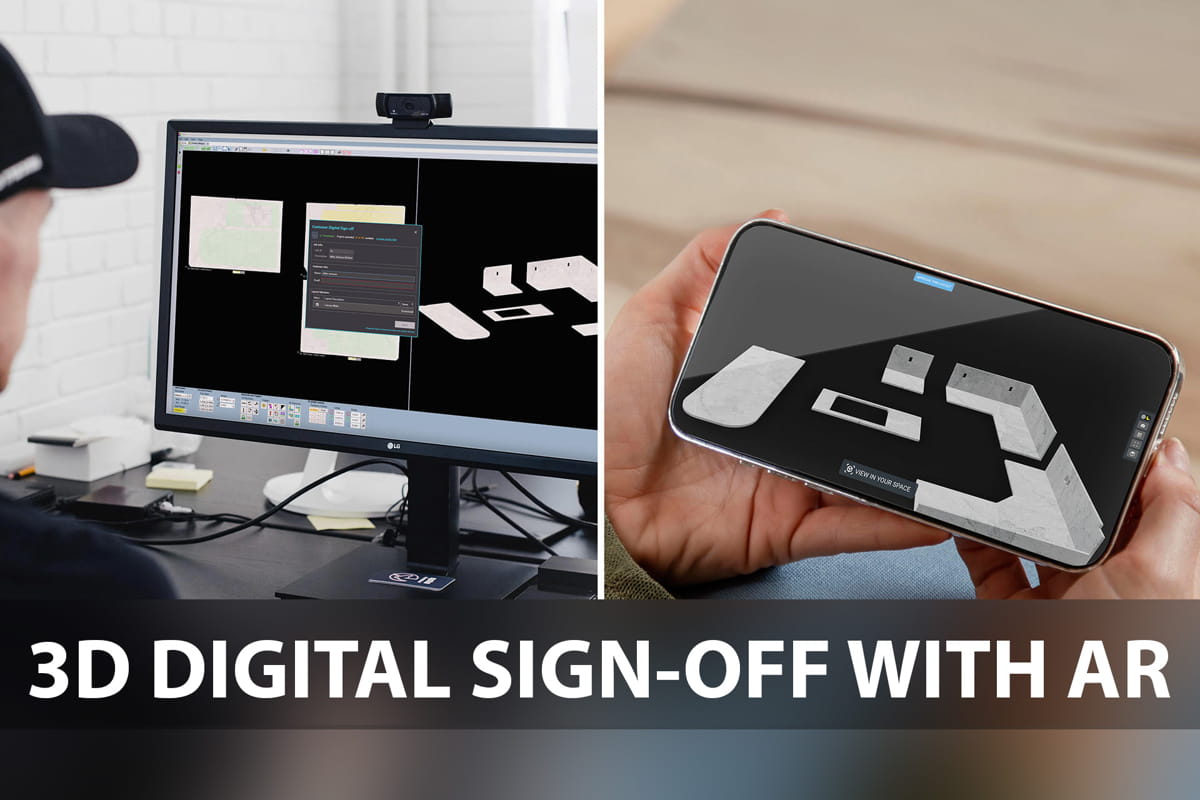 Give your customers a modern approval experience they'll appreciate. With one click from their email, they can explore their layout in stunning 3D on any device, visualize it in their actual kitchen or bathroom using augmented reality, and approve their preferred design with a simple electronic signature. For fabricators, it means no more chasing approvals or managing file attachments—just seamless communication from layout completion to signed confirmation, all within your existing Slabsmith workflow.